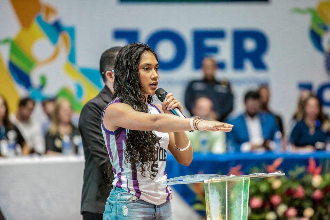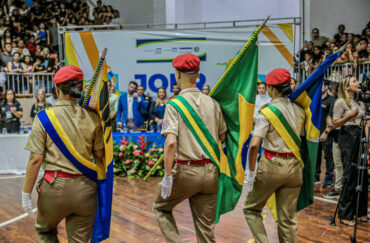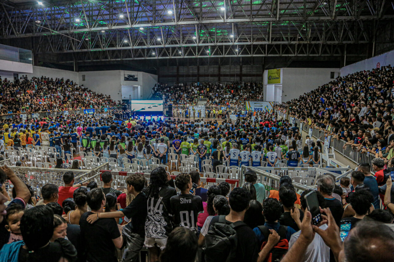O Ginásio Cláudio Coutinho em Porto Velho foi palco nesta segunda-feira (2) da abertura da Fase Macrorregional Metropolitana dos Jogos Escolares de Rondônia (JOER). O evento, promovido pelo Governo de Rondônia por meio da Secretaria de Estado da Educação (Seduc), reuniu estudantes-atletas de 91 escolas da rede pública estadual de ensino, marcando o início de uma jornada esportiva que celebra a juventude e o futuro do estado.