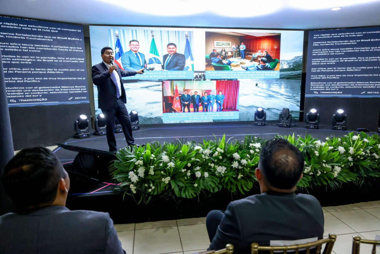 Porto Velho sediou, nos dias 4, 5 e 6 de fevereiro, o Nodo Bioceânico Central, evento que reuniu o governo de Rondônia, o governo federal e os governos da Bolívia, Chile e Peru para alinhar ações voltadas à integração logística e de infraestrutura, ao desenvolvimento econômico e à consolidação de novas rotas de escoamento da produção com acesso ao Oceano Pacífico. A programação do dia contou com a assinatura da Carta de Porto Velho e do Protocolo de Irmandade com o Departamento de Beni, Bolívia. O evento, realizado pelo governo de Rondônia, reuniu autoridades estratégicas do Brasil, Bolívia, Peru e Chile durante três dias de intensos debates.