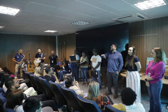 A segunda-feira (8) começou com um convite à empatia, à escuta e à valorização da vida. Pacientes do Centro de Atenção Psicossocial (Caps) Madeira-Mamoré, participantes da Oficina de Música, realizaram uma apresentação emocionante, marcando o início da semana com arte, dignidade e cuidado com a saúde mental. O evento aconteceu no auditório da Secretaria de Estado da Saúde (Sesau), no Palácio Rio Madeira, em Porto Velho.